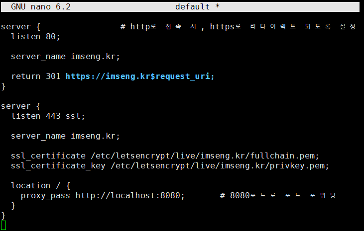 이제 'imseng.kr' 도메인에 대한 Let's Encrypt 인증서가 발급되고 설치되었습니다.