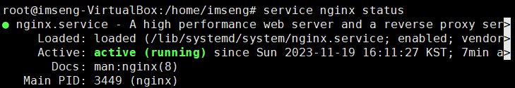 명령어를 입력하면 서비스가 실행되고 있음을 확인할 수 있습니다.