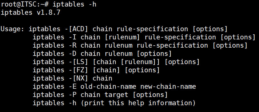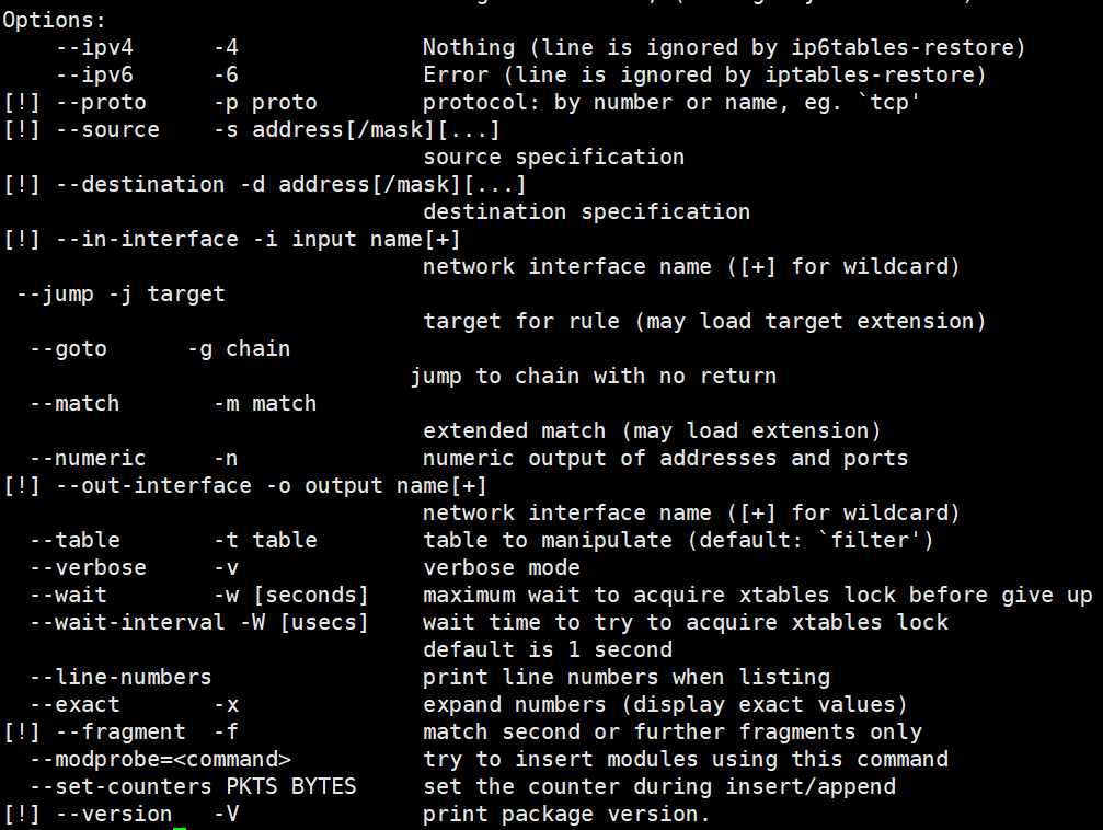 - [옵션] : 규칙을 추가(-A), 삭제(-D), 변경(-I), 순서 변경(-R), 체인 활성화(-E), 체인 비활성화(-D) 등의 작업을 지정합니다.