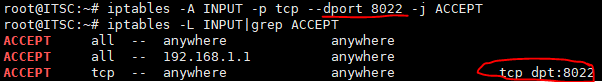 iptables -A INPUT -p tcp --dport 8022 -j ACCEPT