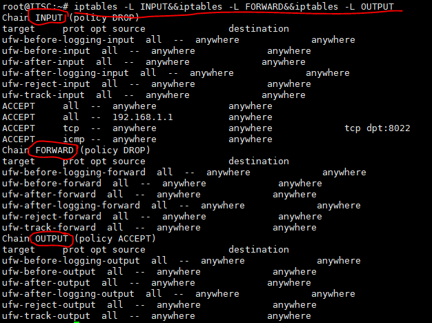 기본적으로, iptables는 INPUT, FORWARD, OUTPUT의 세 가지 기본 체인을 가지고 있습니다.