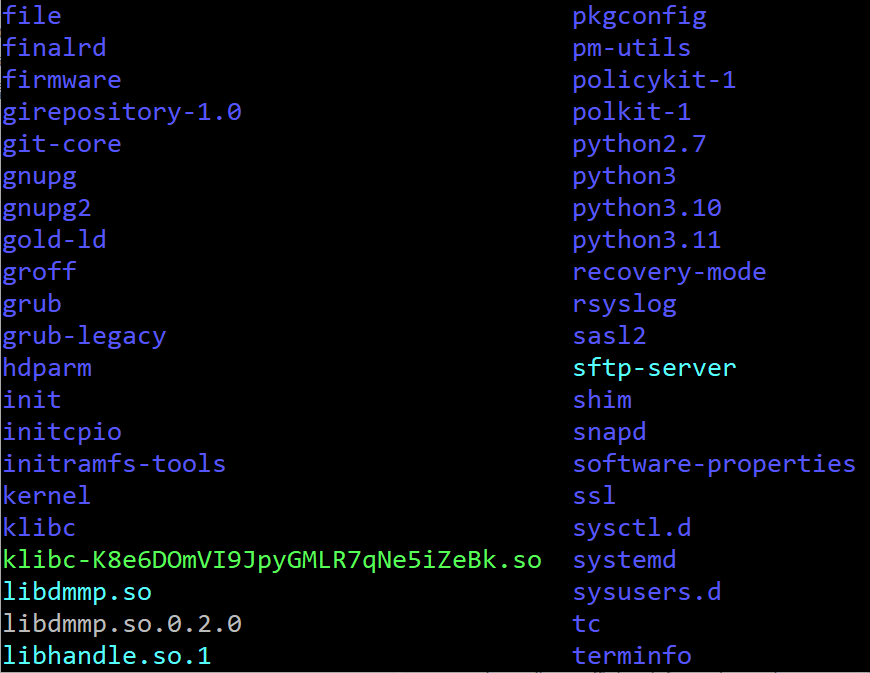 공유 라이브러리들이 모여 있는 곳입니다. 리눅스의 프로그램 공유 센터라고 할 수 있습니다. 프로그램 실행에 필요한 라이브러리가 이곳에 보관됩니다. 프로그램 개발자는 이곳에 있는 라이브러리를 이용하여 프로그램을 개발할 수 있습니다.
