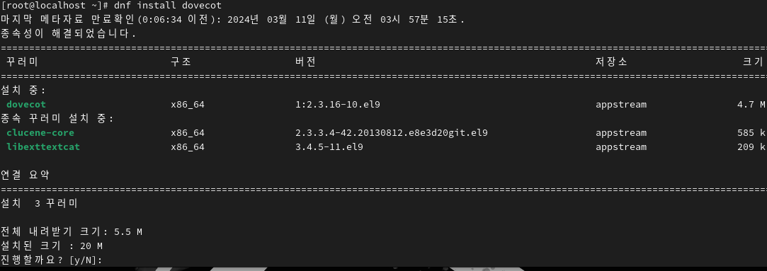 - Dovecot 설치 명령어: sudo dnf install dovecot
