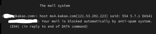 - 제가 보낸 메일이 자동적으로 스팸차단시스템에서 블락이 되었다는 내용입니다.