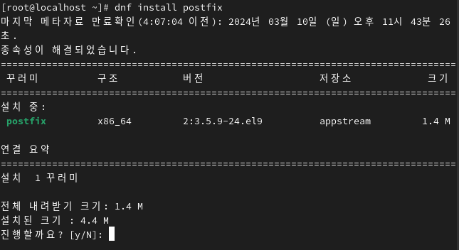 1. Postfix 설치 명령어: sudo dnf install postfix