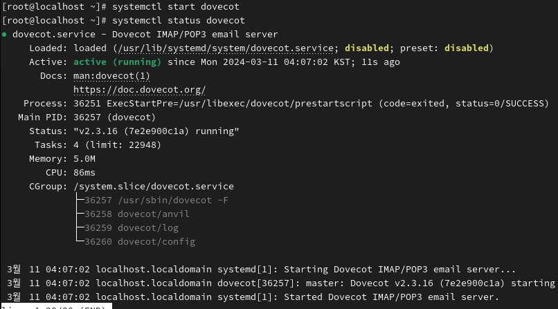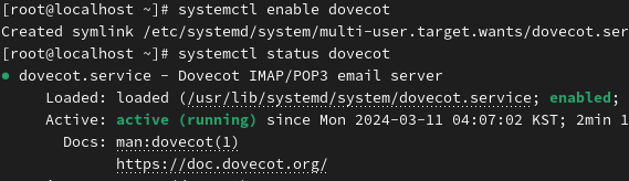 3. Dovecot 서비스 활성화: sudo systemctl enable dovecot