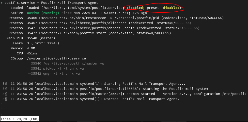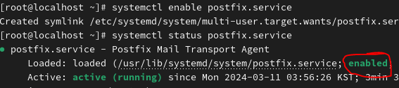 3. Postfix 서비스 활성화: sudo systemctl enable postfix